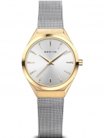 • Manufacturer no.: 18729-010 • Manufacturer series: Damen Ultra Slim 29mm • Functions: Hour, Minute, Second • Movement: Battery (quartz) • Dial color: Silver • Display: Analog • Water resistant: 3 • Bezel: Fixed • Surface finish: Matted, Polished • Case color: Gold • Case material: Stainless steel • Case thickness: 6 • Case shape: Round • Case trimming: Zirconia • Case width: 29 • Caseback: pressed, Stainless steel bottom • Gender: Ladies • Glas: anti-reflecting, Saphire glass • Style: Classic • Strap material: Stainless steel • Strap color: Silver • Lug width: 14 • Clasp: Clip clasp • Max wrist circumferences: 195 • Item weight: 0.04 • Scope of delivery: Box, Instruction, Packaging, Warranty documents