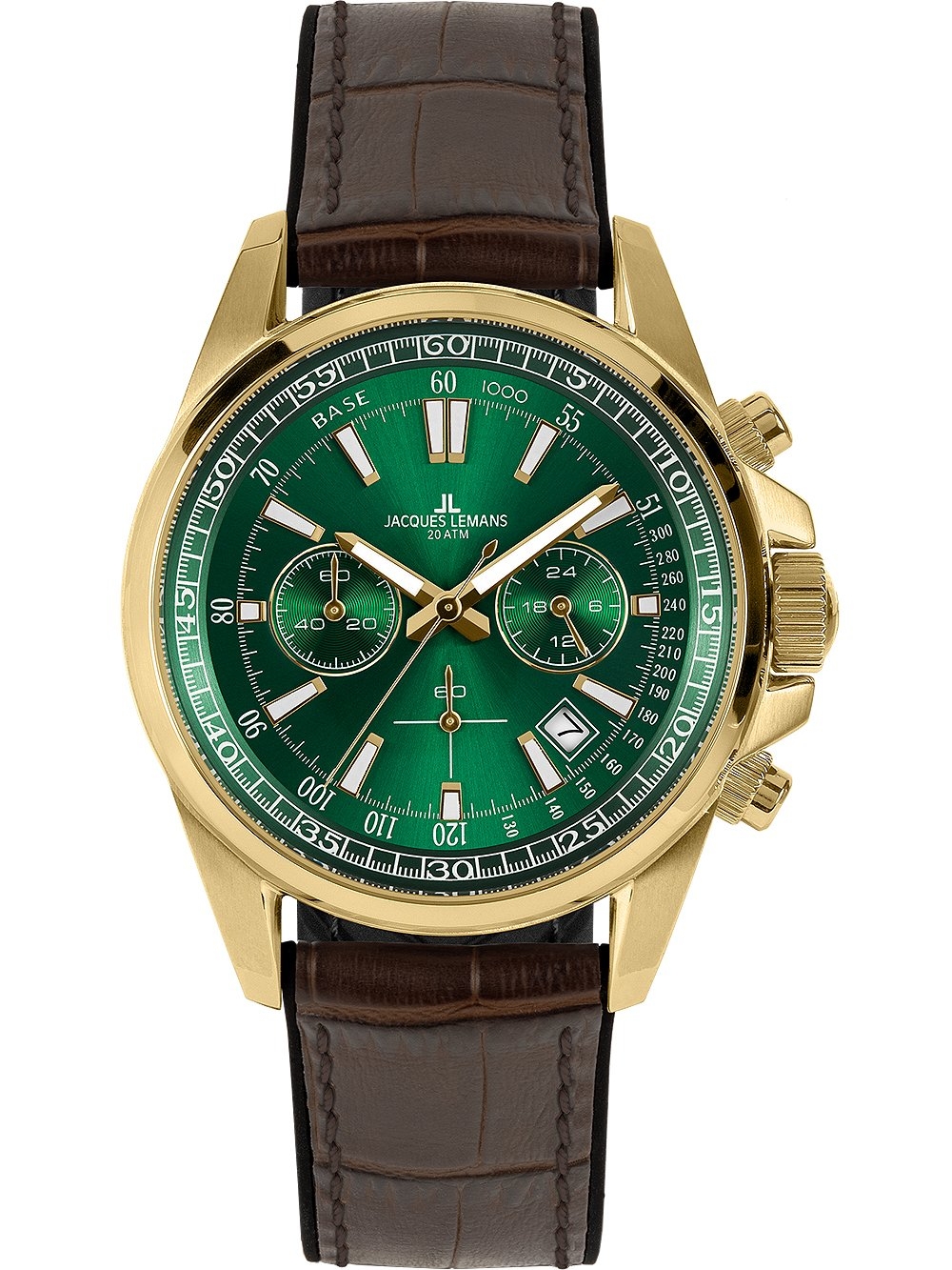 • Manufacturer no.: 1-2117H • Manufacturer series: Liverpool chronograph 44mm • Functions: 24-hours, Chronograph, Date, Hour, Minute, Second • Movement: Battery (quartz) • Dial color: Green • Display: Analog • Water resistant: 20 • Bezel: Fixed • Surface finish: Matted, Polished • Case color: Gold • Case material: Stainless steel • Case thickness: 13 • Case shape: Round • Case width: 44 • Caseback: screwed, Stainless steel bottom • Gender: Mens • Crown: Screwed • Glas: hardened, Mineral glass • Lighting: Illumin. hands, Illumin. indexes • Style: Sporty • Strap material: Calf leather, Silicon • Strap color: Brown • Lug width: 22 • Clasp: Buckle clasp • Max wrist circumferences: 220 • Item weight: 0.09