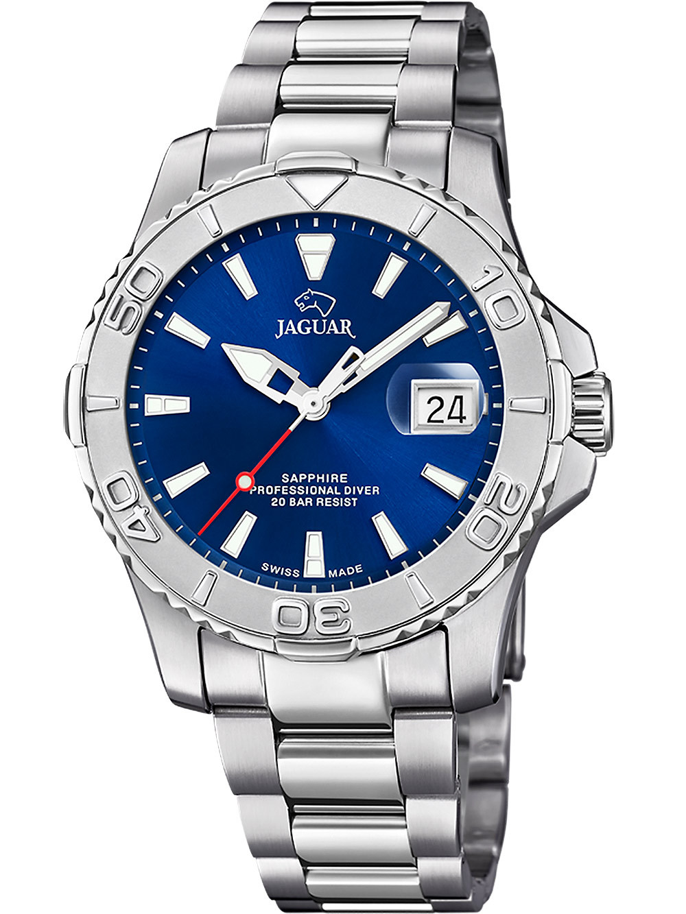 • Manufacturer no.: J969/2 • Manufacturer series: Executive Diver 40mm • Functions: Date, Hour, Minute, Second • Movement: Battery (quartz) • Dial color: Blue • Display: Analog • Water resistant: 20 • Bezel: counterclockwise, Turnable • Surface finish: Matted, Polished • Case color: Silver • Case material: Stainless steel • Case thickness: 12 • Case width: 40 • Caseback: screwed, Stainless steel bottom • Gender: Mens • Crown: Screwed • Glas: anti-reflecting, Saphire glass • Lighting: Illumin. hands, Illumin. indexes • Style: Sporty • Strap material: Stainless steel • Strap color: Silver • Lug width: 20 • Clasp: Folding clasp • Max wrist circumferences: 205 • Item weight: 0.16 • Scope of delivery: Box, Instruction, Packaging, Warranty documents