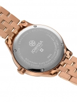 • Manufacturer no.: J4.233.M • Manufacturer series: Tiro 38mm • Functions: Date, Hour, Minute, Second • Movement: Battery (quartz) • Movement label: Swiss Made • Dial color: Blue • Display: Analog • Water resistant: 5 • Bezel: Fixed • Surface finish: Polished • Case color: Rosé gold • Case material: Stainless steel • Case thickness: 9 • Case shape: Round • Case width: 38 • Caseback: screwed, Stainless steel bottom • Gender: Ladies, Mens, Unisex • Glas: hardened, Mineral glass • Style: Modern • Strap material: Stainless steel • Strap color: Rosé gold • Lug width: 18 • Clasp: Butterfly clasp • Max wrist circumferences: 210 • Item weight: 0.10 • Scope of delivery: Box, Instruction, Packaging, Warranty documents