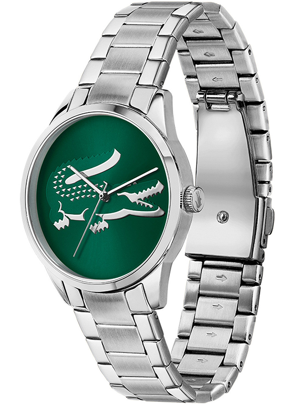• Manufacturer no.: 2001190 • Manufacturer series: Ladycroc 36mm • Functions: Hour, Minute, Second • Movement: Battery (quartz) • Dial color: Green • Display: Analog • Water resistant: 3 • Bezel: Fixed • Surface finish: Matted, Polished • Case color: Silver • Case material: Stainless steel • Case thickness: 8 • Case shape: Round • Case width: 36 • Caseback: pressed, Stainless steel bottom • Gender: Ladies • Glas: hardened, Mineral glass • Style: Modern • Strap material: Stainless steel • Strap color: Silver • Lug width: 18 • Clasp: Folding clasp • Max wrist circumferences: 180 • Item weight: 0.08 • Scope of delivery: Box, Instruction, Packaging, Warranty documents