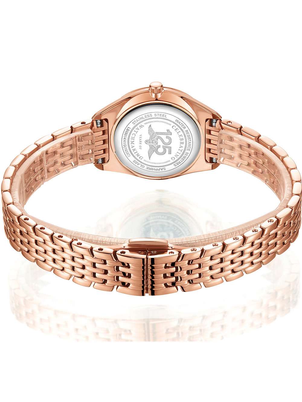 • Manufacturer no.: LB08014/41/D • Manufacturer series: Ultra Slim 27mm • Functions: Hour, Minute • Movement: Battery (quartz) • Dial color: Mother of pearl • Display: Analog • Water resistant: 5 • Bezel: Fixed • Surface finish: Polished • Case color: Rosé gold • Case material: Stainless steel • Case thickness: 6 • Case shape: Round • Case trimming: Diamond • Case width: 27 • Caseback: pressed, Stainless steel bottom • Gender: Ladies • Glas: anti-reflecting, Saphire glass • Style: Modern • Strap material: Stainless steel • Strap color: Rosé gold • Lug width: 13 • Clasp: Butterfly clasp • Max wrist circumferences: 185 • Item weight: 0.05 • Scope of delivery: Box, Instruction, Packaging, Warranty documents