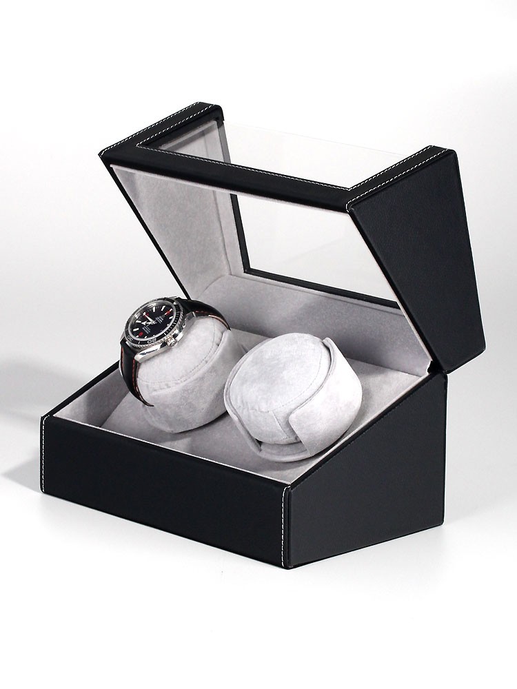 Roth Watch Winder RS-2114-BK h2> Compact winder for 2 watches, with extra silent motor, and 4 programs to choose from. The housing is high quality workmanship and covered with black PU leather. The Interiör is lined with light velvet. The watches holder (pillow) is very flexible and adapts well to any size, so that even little ladies watches can be spanned.