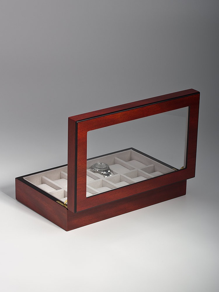Exclusive, lockable watch box with glass lid of Rothschild made of wood holds up to 12 watches. The individual compartments provide ample space for watches with a diameter of up to about 53 mm. Watches Accessories Rothschild offer excellent workmanship at an excellent price performance ratio.