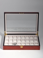 Exclusive, lockable watch box with glass lid of Rothschild made of wood holds up to 24 watches. The individual compartments provide ample space for watches with a diameter of up to about 53 mm. Watches Accessories Rothschild offer excellent workmanship at an excellent price performance ratio.