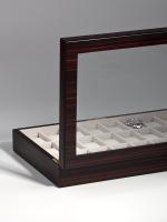 Exclusive, lockable watch box with glass lid of Rothschild made of wood holds up to 24 watches. The individual compartments provide ample space for watches with a diameter of up to about 53 mm. Watches Accessories Rothschild offer excellent workmanship at an excellent price performance ratio.