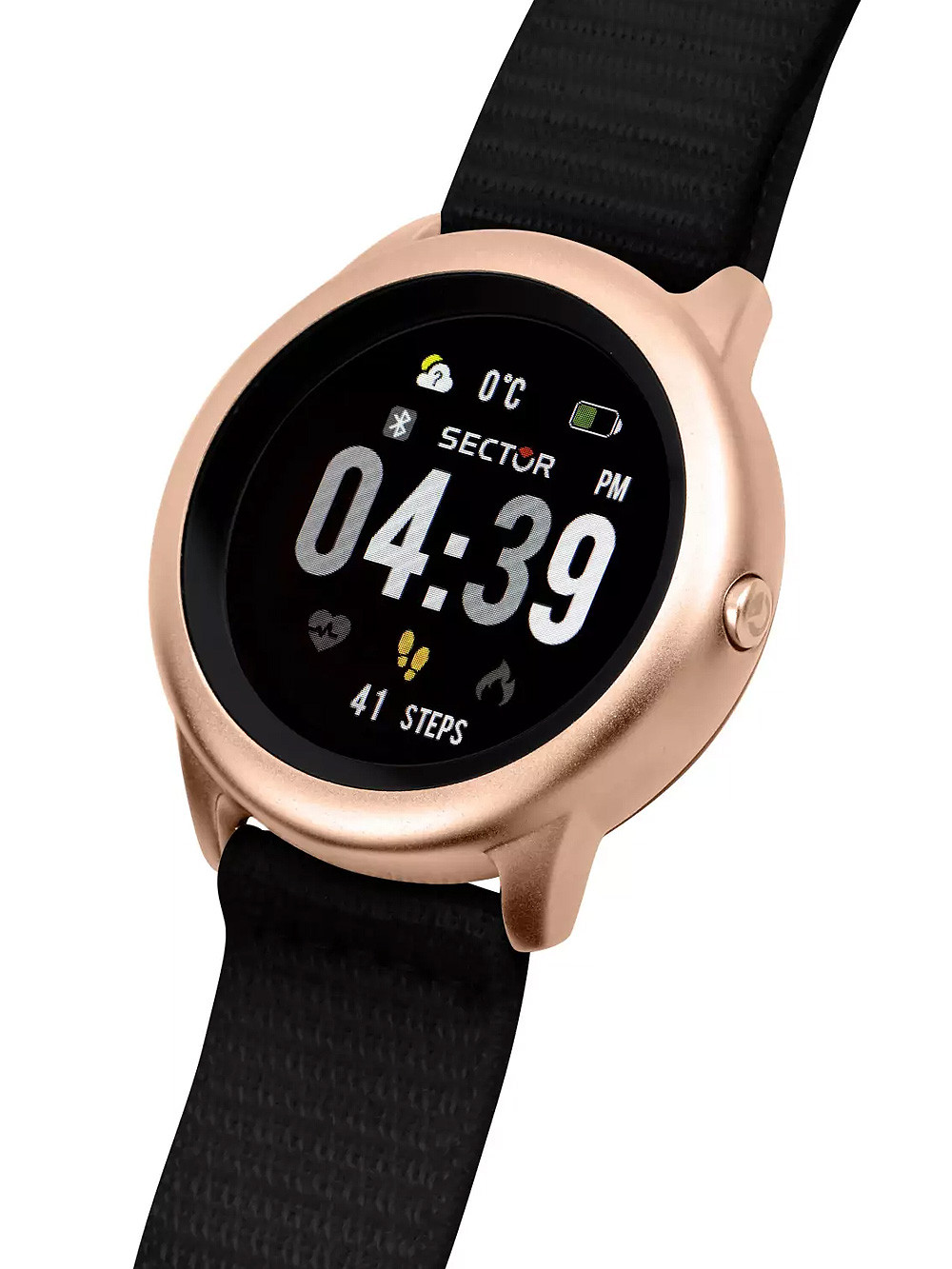• Manufacturer no.: R3251157001 • Manufacturer series: Smartwatch S-01 46mm • Functions: Alarm, Bluetooth calls, Calorie counter, Heart rate monitor, Hour, Microphone, Minute, Multisport, Music control, Pedometer, Stop function, Weather • Movement: Battery (quartz) • Dial color: Black • Display: Digital • Water resistant: 11798 • Bezel: Fixed • Surface finish: Matted • Case color: Rosé gold • Case material: Stainless steel • Case thickness: 13 • Case shape: Round • Case width: 46 • Caseback: screwed, Stainless steel bottom • Gender: Ladies, Mens, Unisex • Glas: hardened, Mineral glass • Lighting: Backgroud illumin. • Style: Sporty • Strap material: Textile • Strap color: Black • Lug width: 22 • Clasp: Klettverschluß • Max wrist circumferences: 245 • Item weight: 0.05 • Scope of delivery: Box, Instruction, Packaging, Warranty documents