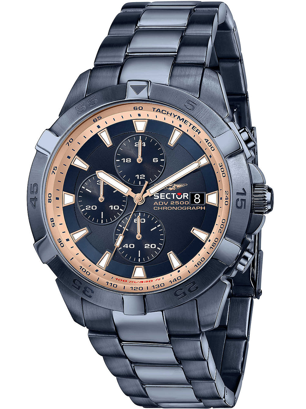 • Manufacturer no.: R3273643007 • Manufacturer series: Serie ADV2500 Chronograph 43mm • Functions: 24-hours, Chronograph, Date, Hour, Minute, Second • Movement: Battery (quartz) • Dial color: Blue • Display: Analog • Water resistant: 10 • Bezel: Fixed • Surface finish: Matted, Polished • Case color: Blue • Case material: Stainless steel • Case thickness: 13 • Case width: 43 • Caseback: screwed, Stainless steel bottom • Gender: Mens • Crown: Screwed • Glas: hardened, Mineral glass • Lighting: Illumin. hands, Illumin. indexes • Style: Sporty • Strap material: Stainless steel • Strap color: Blue • Lug width: 22 • Clasp: Folding clasp • Max wrist circumferences: 210 • Item weight: 0.16 • Scope of delivery: Box, Instruction, Packaging, Warranty documents
