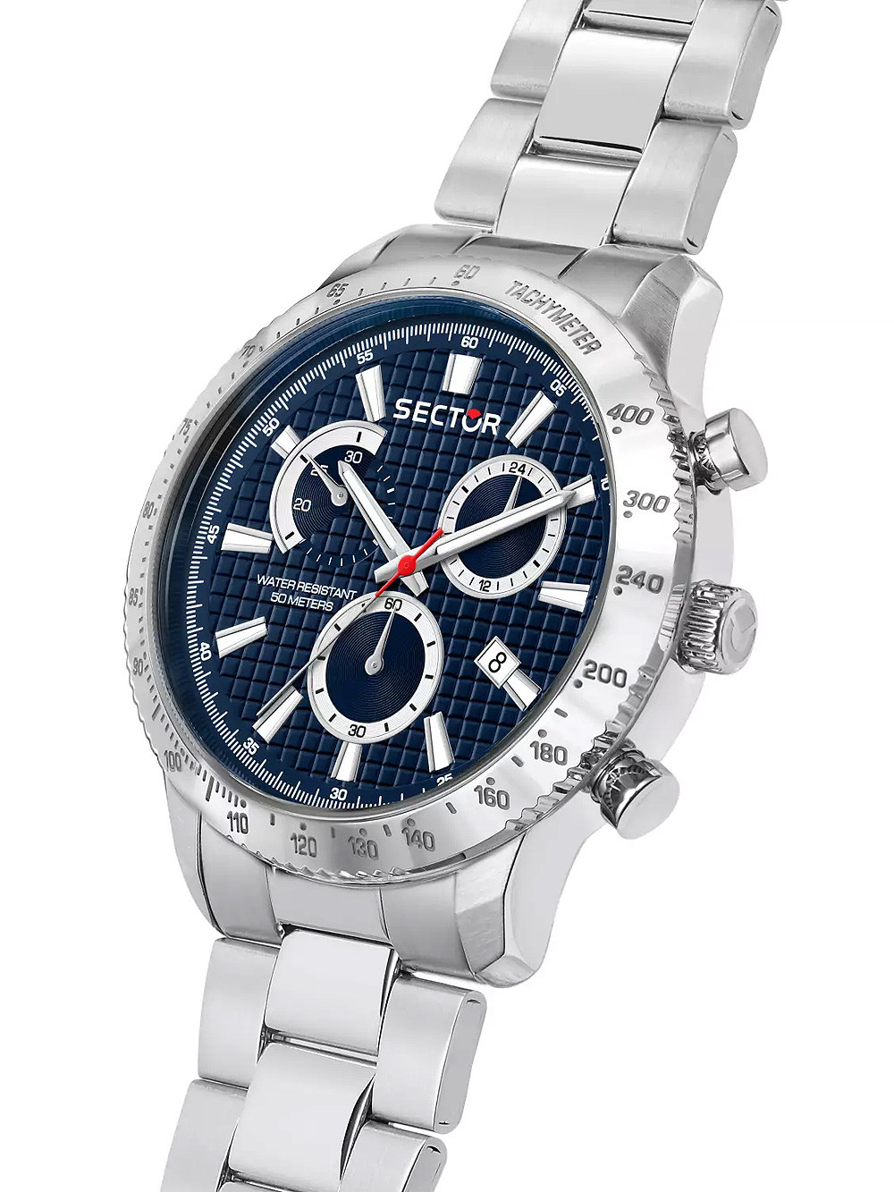 • Manufacturer no.: R3273778003 • Manufacturer series: Serie 270 Chronograph 45mm • Functions: 24-hours, Chronograph, Date, Hour, Minute, Second • Movement: Battery (quartz) • Dial color: Blue • Display: Analog • Water resistant: 5 • Bezel: Fixed • Surface finish: Matted, Polished • Case color: Silver • Case material: Stainless steel • Case thickness: 14 • Case width: 45 • Caseback: pressed, Stainless steel bottom • Gender: Mens • Glas: hardened, Mineral glass • Lighting: Illumin. hands, Illumin. indexes • Style: Sporty • Strap material: Stainless steel • Strap color: Silver • Lug width: 22 • Clasp: Folding clasp • Max wrist circumferences: 215 • Item weight: 0.14 • Scope of delivery: Box, Instruction, Packaging, Warranty documents