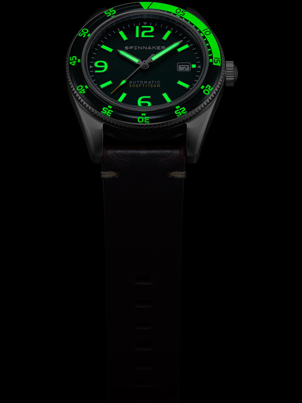 • Manufacturer no.: SP-5055-0B • Manufacturer series: Fleuss Automatik 43mm • Functions: Date, Hour, Minute, Second • Movement: Automatic • Movement label: NH35, Seiko • Dial color: Black • Display: Analog • Water resistant: 15 • Bezel: counterclockwise, Turnable • Surface finish: Matted, Polished • Case color: Silver • Case material: Stainless steel • Case thickness: 14 • Case shape: Round • Case width: 43 • Caseback: Glas bottom, screwed • Gender: Mens • Crown: Screwed • Glas: anti-reflecting, Saphire glass • Lighting: Illumin. hands, Illumin. indexes • Style: Sporty • Strap material: Calf leather • Strap color: Black • Lug width: 22 • Clasp: Buckle clasp • Max wrist circumferences: 230 • Item weight: 0.10 • Scope of delivery: Box, Instruction, Packaging, Warranty documents