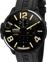 • Manufacturer no.: 8896 • Manufacturer series: Capsoil Chrono DLC 45mm Titanium • Functions: Chronograph, Hour, Minute, Second • Movement: Battery (quartz) • Dial color: Black • Display: Analog • Water resistant: 10 • Bezel: Fixed • Surface finish: Matted • Case color: Black • Case material: Titanium • Case thickness: 20 • Case shape: Round • Case width: 45 • Caseback: screwed, Titanium bottom • Gender: Mens • Crown: Screwed • Glas: anti-reflecting, Saphire glass • Lighting: Illumin. hands, Illumin. indexes • Style: Modern • Strap material: Caoutchouc • Strap color: Black • Lug width: 22 • Clasp: Buckle clasp • Max wrist circumferences: 220 • Item weight: 0.10 • Scope of delivery: Box, Instruction, Packaging, Warranty documents