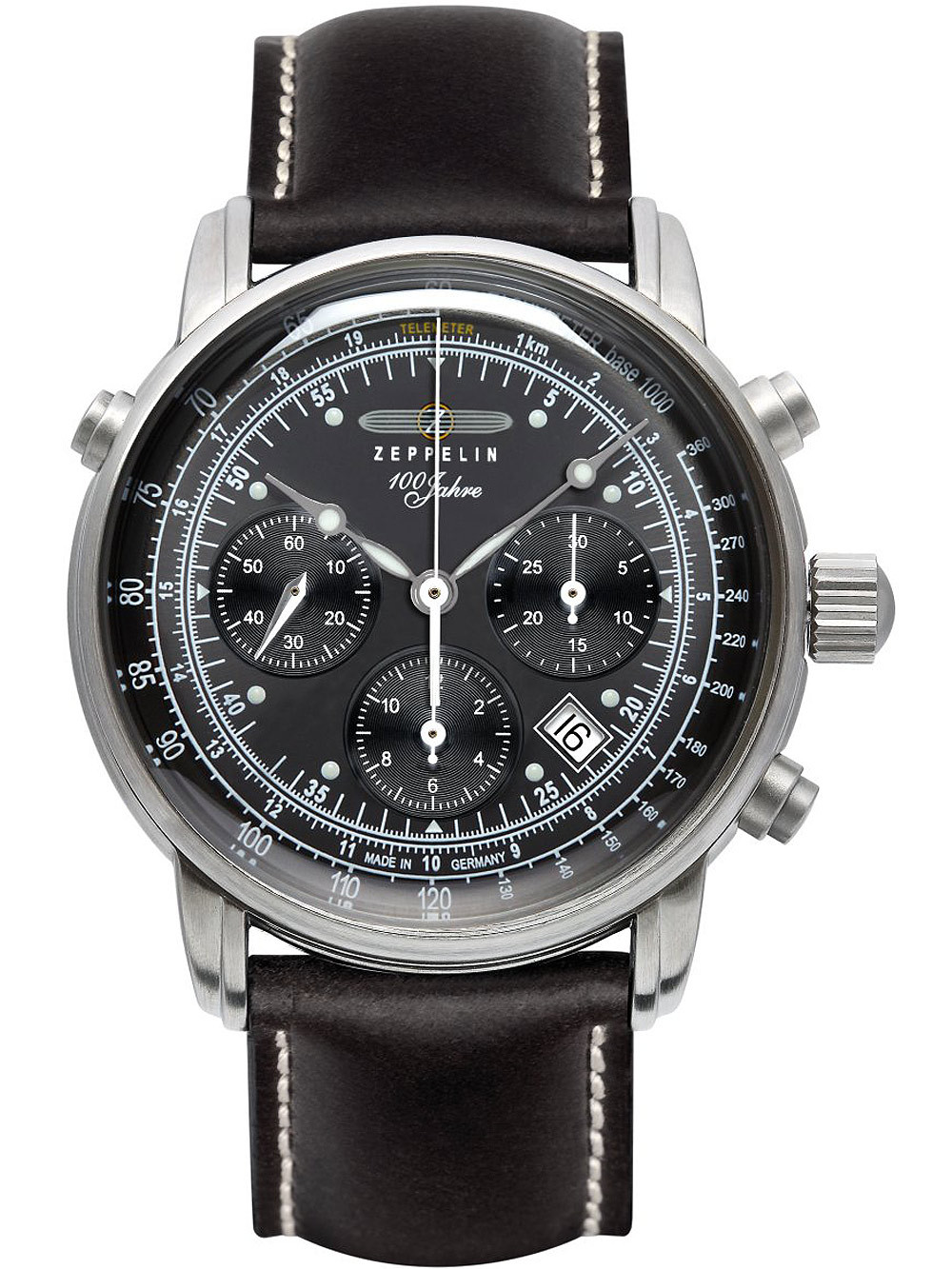 • Manufacturer no.: 7618-2 • Manufacturer series: 100 Jahre Zeppelin Ed. 1 - Autom. Chrono 43mm • Functions: Chronograph, Date, Hour, Minute, Second • Movement: Automatic • Movement label: 7753, ETA, Swiss Made, Valjoux • Dial color: Black • Display: Analog • Water resistant: 5 • Bezel: Fixed • Surface finish: Matted, Polished • Case color: Silver • Case material: Stainless steel • Case thickness: 16 • Case width: 43 • Caseback: Glas bottom, screwed • Gender: Mens • Glas: anti-reflecting, Saphire glass • Lighting: Illumin. hands, Illumin. indexes • Style: Classic • Strap material: Calf leather • Strap color: Black • Lug width: 22 • Clasp: Buckle clasp • Max wrist circumferences: 220 • Item weight: 0.10 • Scope of delivery: Box, Instruction, Packaging, Warranty documents