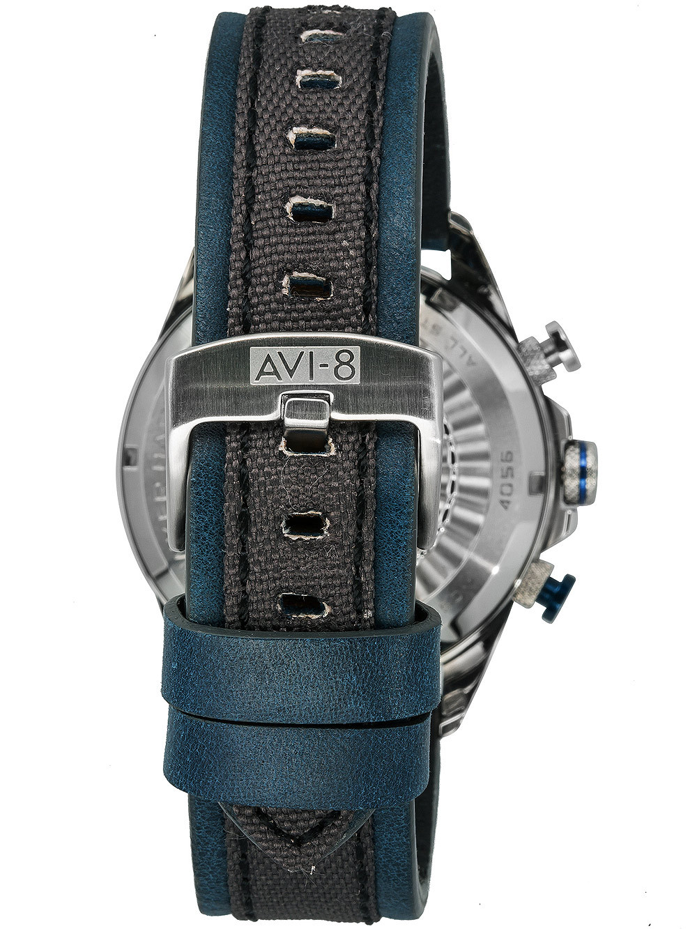 • Manufacturer no.: AV-4056-01 • Manufacturer series: Hawker Harrier Chronograph 45mm • Functions: Chronograph, Date, Day, Hour, Minute, Second • Movement: Battery (quartz) • Dial color: Blue • Display: Analog • Water resistant: 5 • Bezel: Fixed • Surface finish: Matted, Polished • Case color: Silver • Case material: Stainless steel • Case thickness: 15 • Case shape: Round • Case width: 45 • Caseback: screwed, Stainless steel bottom • Gender: Mens • Glas: hardened, Mineral glass • Lighting: Illumin. hands, Illumin. indexes • Style: Sporty • Strap material: Calf leather • Strap color: Blue, Grey • Lug width: 22 • Clasp: Buckle clasp • Max wrist circumferences: 230 • Item weight: 0.10 • Scope of delivery: Box, Instruction, Packaging, Warranty documents