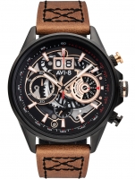 • Manufacturer no.: AV-4065-03 • Manufacturer series: Hawker Harrier Chronograph 45mm • Functions: Chronograph, Date, Hour, Minute, Second • Movement: Battery (quartz) • Dial color: Black • Display: Analog • Water resistant: 5 • Bezel: Fixed • Surface finish: Matted, Polished • Case color: Black • Case material: Stainless steel • Case thickness: 15 • Case shape: Round • Case width: 45 • Caseback: screwed, Stainless steel bottom • Gender: Mens • Glas: hardened, Mineral glass • Lighting: Illumin. hands, Illumin. indexes • Style: Sporty • Strap material: Calf leather • Strap color: Brown • Lug width: 22 • Clasp: Buckle clasp • Max wrist circumferences: 230 • Item weight: 0.10 • Scope of delivery: Box, Instruction, Packaging, Warranty documents