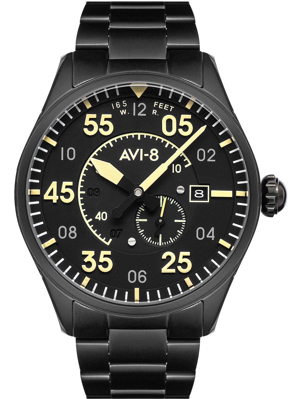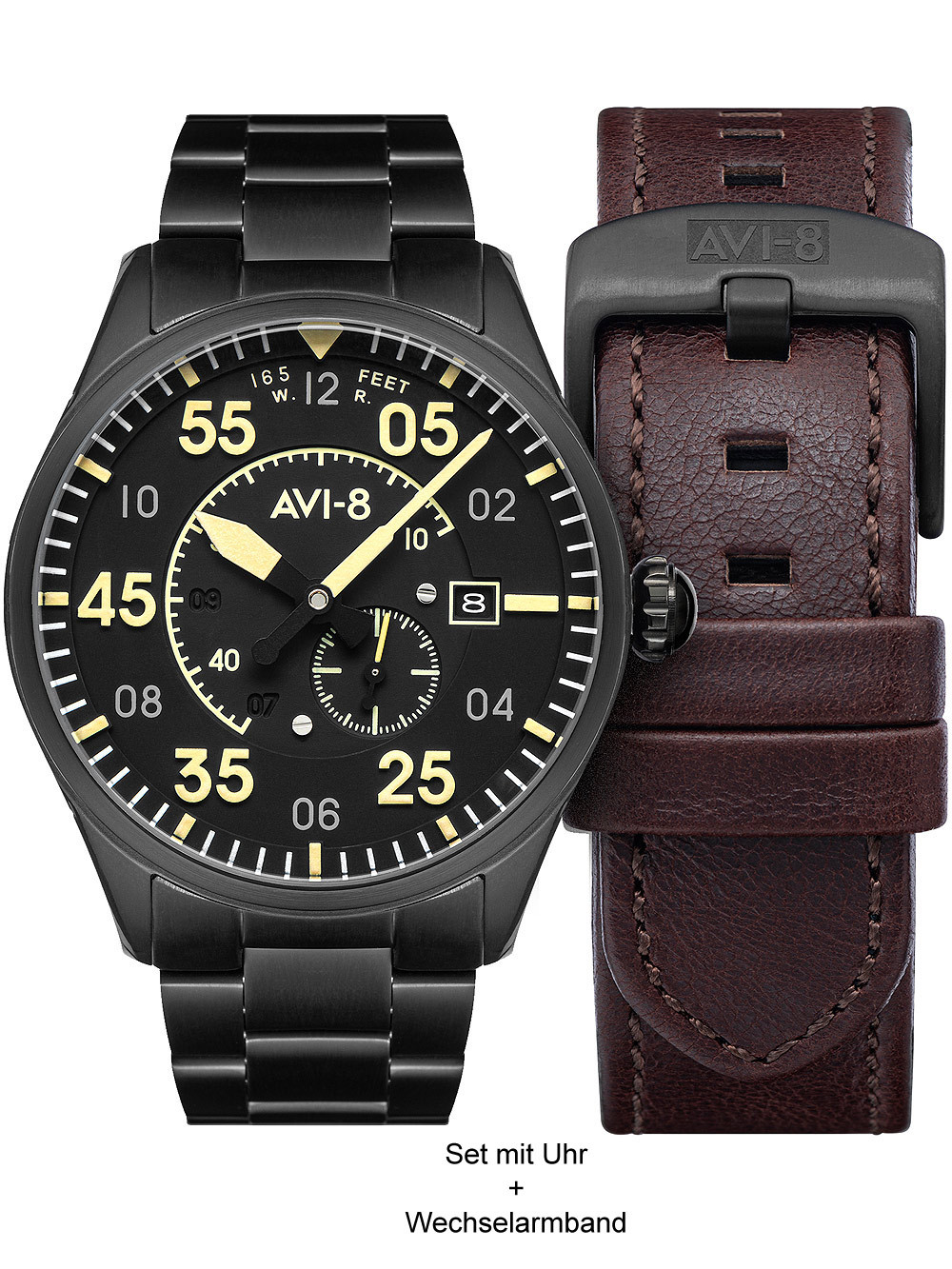 • Manufacturer no.: AV-4073-33 • Manufacturer series: Spitfire Automatik 42mm • Functions: Date, Hour, Minute, Second • Movement: Automatic • Dial color: Black • Display: Analog • Water resistant: 5 • Bezel: Fixed • Surface finish: Matted, Polished • Case color: Black • Case material: Stainless steel • Case thickness: 14 • Case shape: Round • Case width: 42 • Caseback: Glas bottom, screwed • Gender: Mens • Glas: hardened, Mineral glass • Lighting: Illumin. hands, Illumin. indexes • Style: Sporty • Strap material: Stainless steel • Strap color: Black • Lug width: 22 • Clasp: Folding clasp • Max wrist circumferences: 210 • Item weight: 0.16 • Scope of delivery: Box, Instruction, Packaging, Warranty documents, Additional Strap