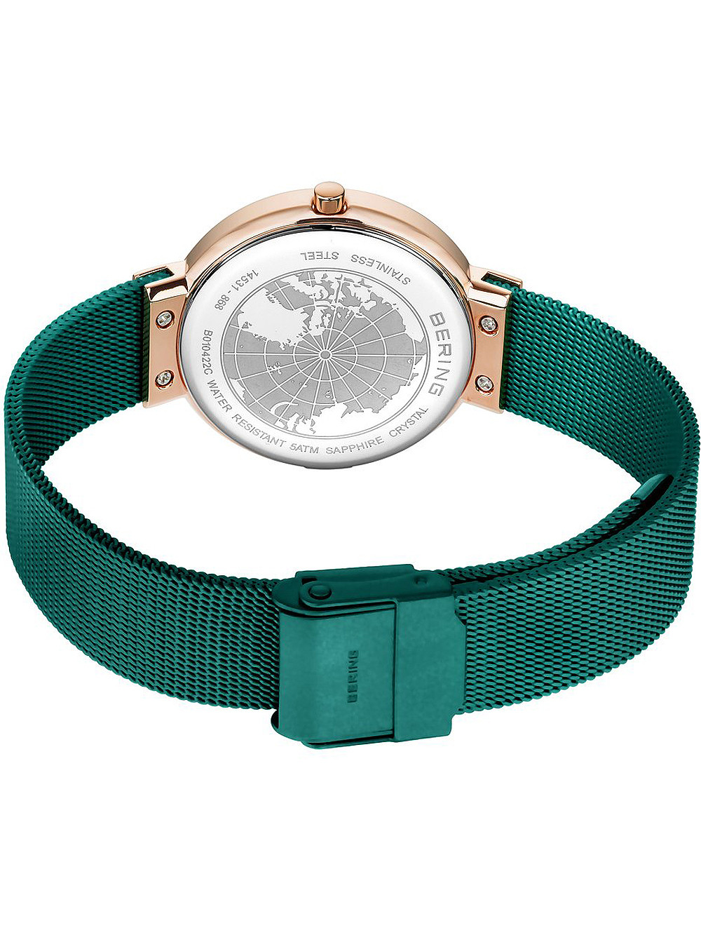 • Manufacturer no.: 14531-869 • Manufacturer series: Damen Classic 31mm • Functions: Hour, Minute • Movement: Battery (quartz) • Dial color: Green • Display: Analog • Water resistant: 5 • Bezel: Fixed • Surface finish: Matted, Polished • Case color: Rosé gold • Case material: Stainless steel • Case thickness: 6 • Case shape: Round • Case width: 31 • Caseback: pressed, Stainless steel bottom • Gender: Ladies • Glas: anti-reflecting, Saphire glass • Style: Classic • Strap material: Stainless steel • Strap color: Green • Lug width: 14 • Clasp: Clip clasp • Max wrist circumferences: 195 • Item weight: 0.04 • Scope of delivery: Box, Instruction, Packaging, Warranty documents