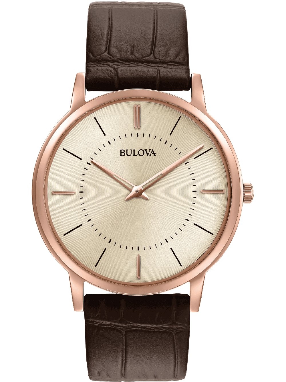 • Manufacturer no.: 97A126 • Manufacturer series: American Clipper 40mm • Functions: Hour, Minute • Movement: Battery (quartz) • Dial color: Cream • Display: Analog • Water resistant: 3 • Bezel: Fixed • Surface finish: Polished • Case color: Rosé gold • Case material: Stainless steel • Case thickness: 6 • Case shape: Round • Case width: 40 • Caseback: pressed, Stainless steel bottom • Gender: Mens • Glas: hardened, Mineral glass • Style: Classic • Strap material: Calf leather • Strap color: Brown • Lug width: 20 • Clasp: Buckle clasp • Max wrist circumferences: 220 • Item weight: 0.03 • Scope of delivery: Box, Instruction, Packaging, Warranty documents