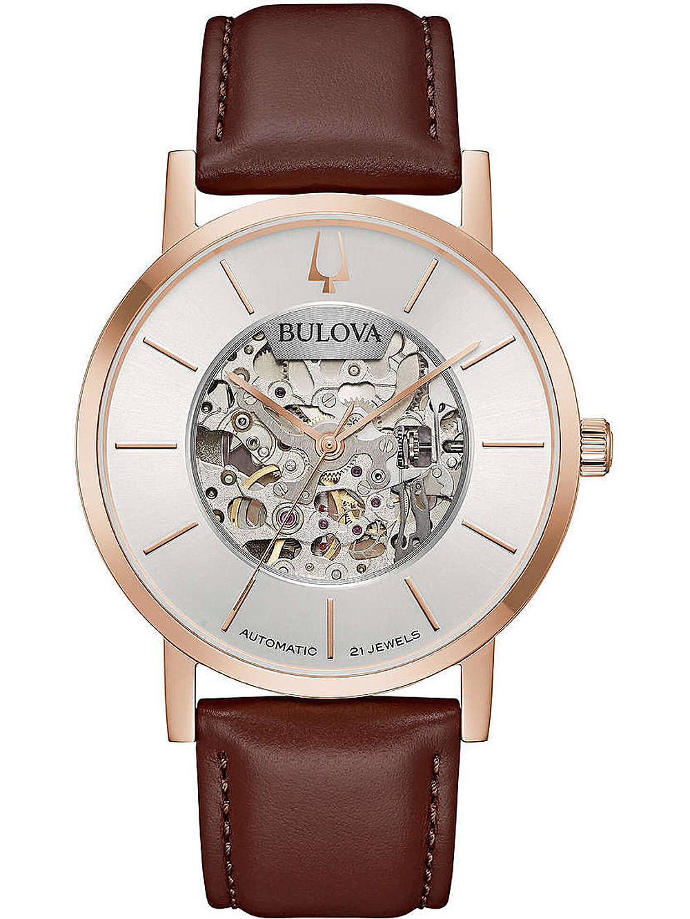 • Manufacturer no.: 97A172 • Manufacturer series: American Clipper Automatik 42mm • Functions: Hour, Minute, Second • Movement: Automatic • Dial color: Silver • Display: Analog • Water resistant: 3 • Bezel: Fixed • Surface finish: Matted, Polished • Case color: Rosé gold • Case material: Stainless steel • Case thickness: 12 • Case width: 42 • Caseback: Glas bottom, screwed • Gender: Mens • Glas: hardened, Mineral glass • Style: Classic • Strap material: Calf leather • Strap color: Brown • Lug width: 22 • Clasp: Buckle clasp • Max wrist circumferences: 230 • Item weight: 0.06 • Scope of delivery: Box, Instruction, Packaging, Warranty documents