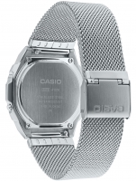 Brand: Casio • Manufacturer no.: A1000M-1BEF • Manufacturer series: Vintage Iconic 38mm • Functions: 12-/24 time mode, Alarm, Automatic calender, Date, Day, Hour, Minute, Second, Stop function • Movement: Battery (quartz) • Dial color: Black, Mother of pearl • Display: Digital • Bezel: Fixed • Surface finish: Matted, Polished • Case color: Silver • Case material: Stainless steel • Case thickness: 8 • Case shape: Rectangle • Case width: 38 • Caseback: screwed, Stainless steel bottom • Gender: Ladies, Mens, Unisex • Glas: hardened, Mineral glass • Lighting: LED Light • Style: Modern • Strap material: Stainless steel • Strap color: Silver • Lug width: 21 • Clasp: Clip clasp • Max wrist circumferences: 210 • Item weight: 0.07 • Scope of delivery: Box, Instruction, Packaging, Warranty documents"