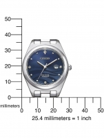 Brand: Citizen • Manufacturer no.: EW2600-83L • Manufacturer series: Super-Titanium Eco-Drive 29mm • Functions: Date, Hour, Minute, Second • Movement: Solar (quartz) • Movement label: Citizen, E013 • Dial color: Blue • Display: Analog • Water resistant: 10 • Bezel: Fixed • Surface finish: Matted, Polished • Case color: Silver • Case material: Titanium • Case thickness: 9 • Case shape: Round • Case trimming: Zirconia • Case width: 29 • Caseback: pressed, Titanium bottom • Gender: Ladies • Glas: anti-reflecting, Saphire glass • Style: Elegant • Strap material: Titanium • Strap color: Silver • Lug width: 14 • Clasp: Folding clasp • Max wrist circumferences: 180 • Item weight: 0.04