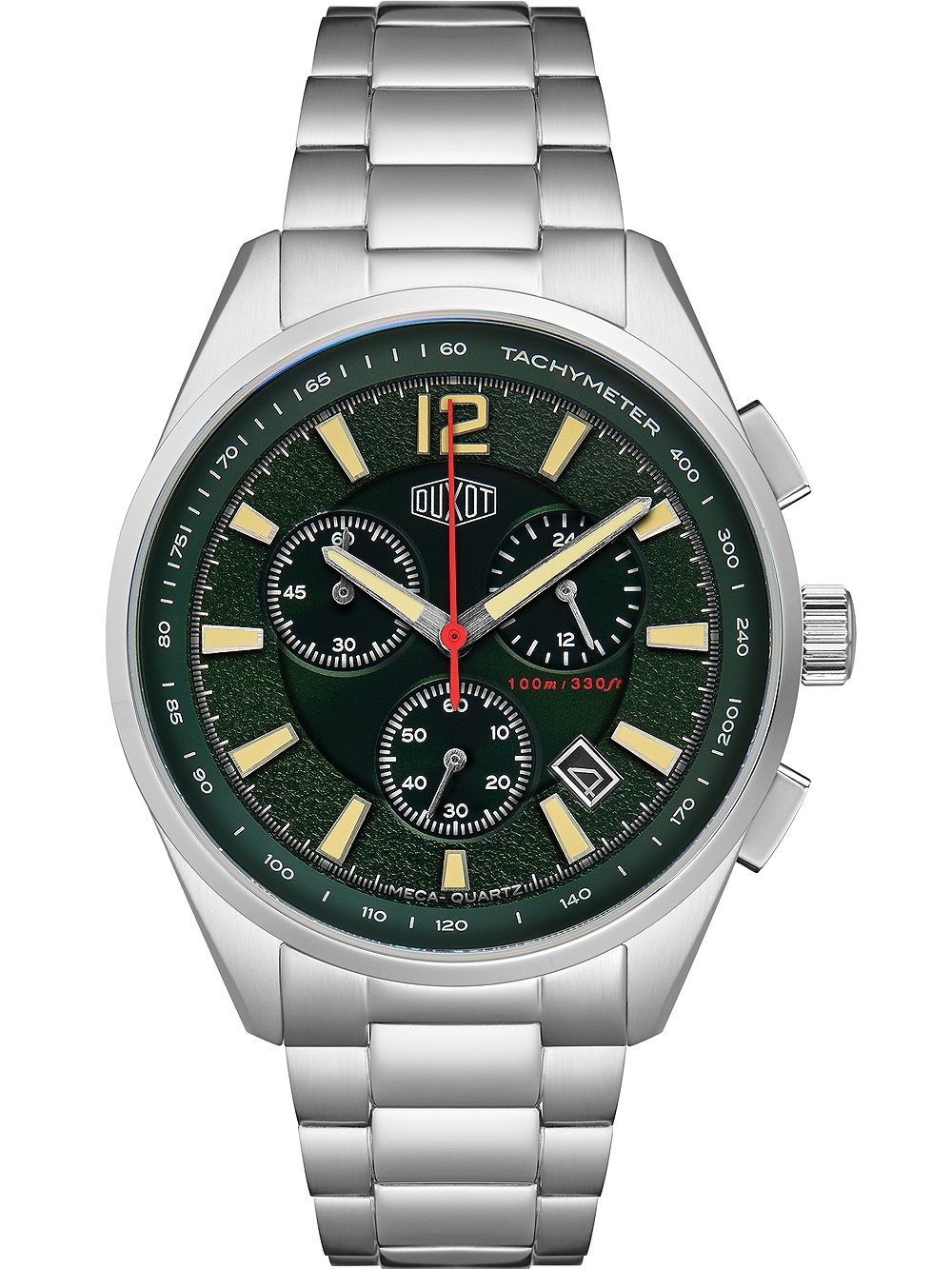 • Manufacturer no.: DX-2017-33 • Manufacturer series: Ascensus chronograph 44mm • Functions: 24-hours, Chronograph, Date, Hour, Minute, Second • Movement: Battery (quartz) • Dial color: Green • Display: Analog • Water resistant: 10 • Bezel: Fixed • Surface finish: Matted, Polished • Case color: Silver • Case material: Stainless steel • Case thickness: 13 • Case width: 44 • Caseback: screwed, Stainless steel bottom • Gender: Mens • Crown: Screwed • Glas: anti-reflecting, Saphire glass • Lighting: Illumin. hands, Illumin. indexes • Style: Sporty • Strap material: Stainless steel • Strap color: Silver • Lug width: 22 • Clasp: Folding clasp • Max wrist circumferences: 215 • Item weight: 0.17 • Scope of delivery: Box, Instruction, Packaging, Warranty documents