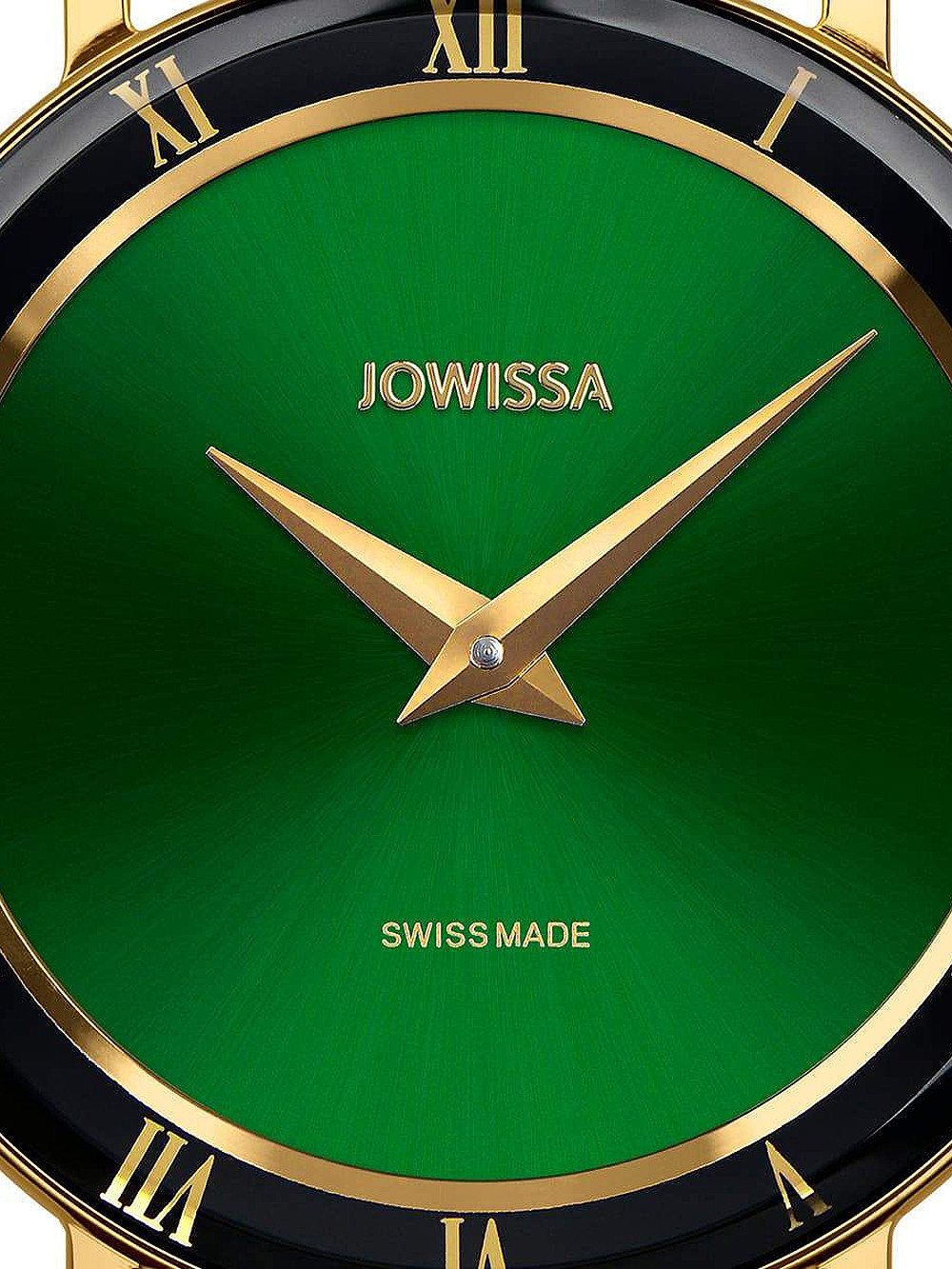 • Manufacturer no.: J2.273.M • Manufacturer series: Roma 30mm • Functions: Hour, Minute • Movement: Battery (quartz) • Movement label: Swiss Made • Dial color: Green • Display: Analog • Water resistant: 5 • Bezel: Fixed • Surface finish: Polished • Case color: Gold • Case material: Stainless steel • Case thickness: 6 • Case shape: Round • Case width: 30 • Caseback: pressed, Stainless steel bottom • Gender: Ladies • Glas: hardened, Mineral glass • Style: Elegant • Strap material: Calf leather • Strap color: Green • Lug width: 15 • Clasp: Buckle clasp • Max wrist circumferences: 190 • Item weight: 0.02 • Scope of delivery: Box, Instruction, Packaging, Warranty documents