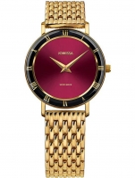 • Manufacturer no.: J2.291.M • Manufacturer series: Roma 30mm • Functions: Hour, Minute • Movement: Battery (quartz) • Movement label: Swiss Made • Dial color: Red • Display: Analog • Water resistant: 5 • Bezel: Fixed • Surface finish: Polished • Case color: Gold • Case material: Stainless steel • Case thickness: 6 • Case shape: Round • Case width: 30 • Caseback: pressed, Stainless steel bottom • Gender: Ladies • Glas: hardened, Mineral glass • Style: Elegant • Strap material: Stainless steel • Strap color: Gold • Lug width: 15 • Clasp: Clip clasp • Max wrist circumferences: 205 • Item weight: 0.06 • Scope of delivery: Box, Instruction, Packaging, Warranty documents