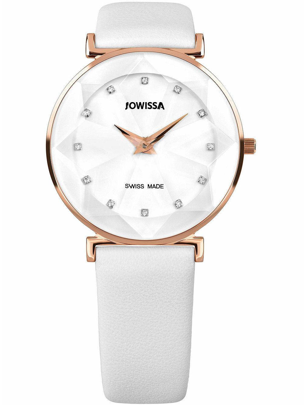 • Manufacturer no.: J5.545.L • Manufacturer series: Facet 36mm • Functions: Hour, Minute • Movement: Battery (quartz) • Movement label: Swiss Made • Dial color: White • Display: Analog • Water resistant: 3 • Bezel: Fixed • Surface finish: Polished • Case color: Rosé gold • Case material: Stainless steel • Case thickness: 9 • Case shape: Round • Case trimming: Zirconia • Case width: 36 • Caseback: screwed, Stainless steel bottom • Gender: Ladies • Glas: hardened, Mineral glass • Style: Elegant • Strap material: Calf leather • Strap color: white • Lug width: 18 • Clasp: Buckle clasp • Max wrist circumferences: 205 • Item weight: 0.04 • Scope of delivery: Box, Instruction, Packaging, Warranty documents