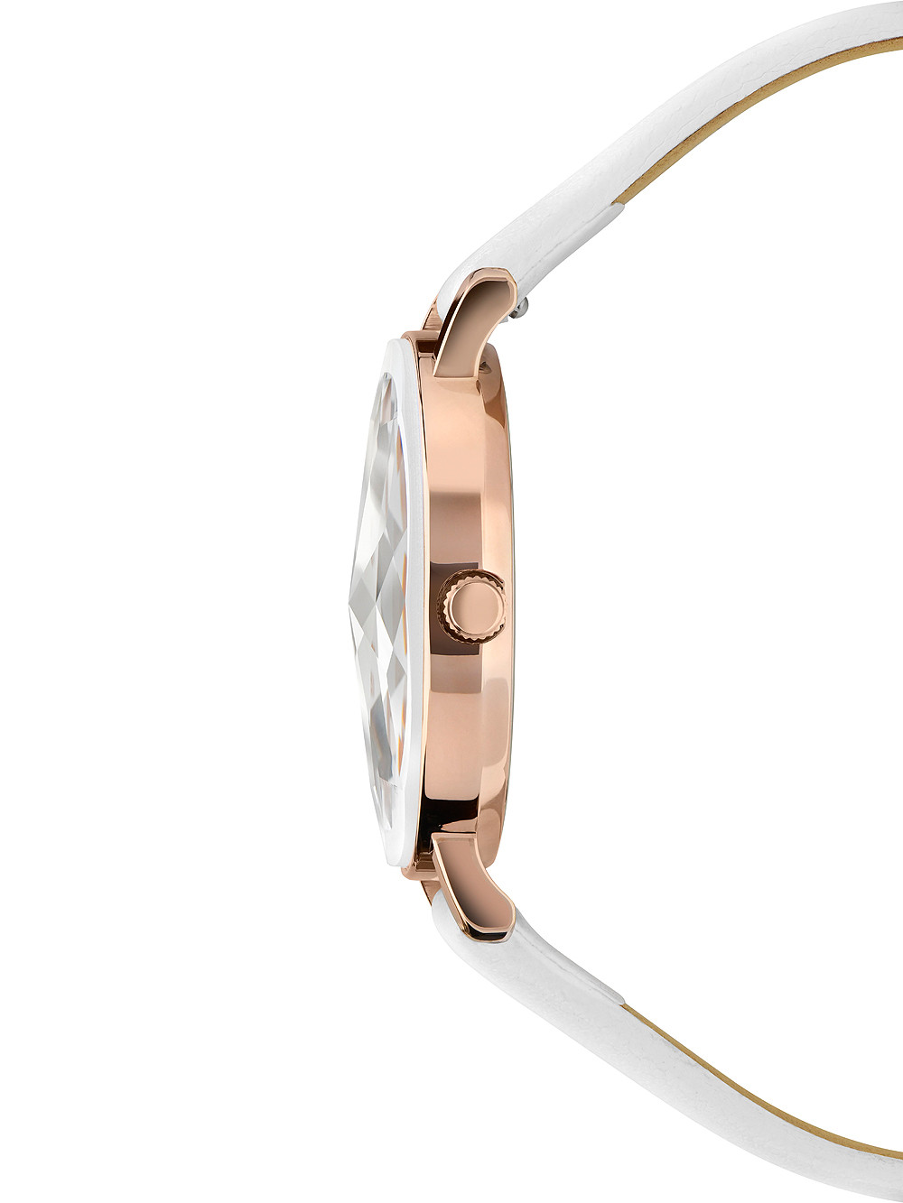 • Manufacturer no.: J5.609.M • Manufacturer series: Facet 30mm • Functions: Hour, Minute • Movement: Battery (quartz) • Movement label: Swiss Made • Dial color: White • Display: Analog • Water resistant: 5 • Bezel: Fixed • Surface finish: Polished • Case color: Rosé gold • Case material: Stainless steel • Case thickness: 10 • Case shape: Round • Case trimming: Zirconia • Case width: 30 • Caseback: pressed, Stainless steel bottom • Gender: Ladies • Glas: hardened, Mineral glass • Style: Elegant • Strap material: Calf leather • Strap color: white • Lug width: 15 • Clasp: Buckle clasp • Max wrist circumferences: 185 • Item weight: 0.02 • Scope of delivery: Box, Instruction, Packaging, Warranty documents