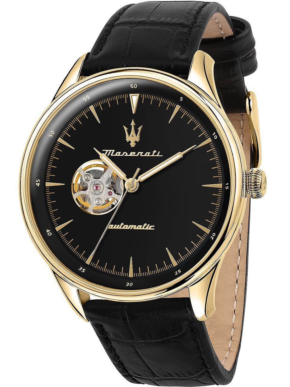 • Manufacturer no.: R8821146001 • Manufacturer series: Tradizione automatic 45mm • Functions: Hour, Minute, Second • Movement: Automatic • Dial color: Black • Display: Analog • Water resistant: 10 • Bezel: Fixed • Surface finish: Matted, Polished • Case color: Gold • Case material: Stainless steel • Case thickness: 14 • Case shape: Round • Case width: 45 • Caseback: Glas bottom, screwed • Gender: Mens • Crown: Screwed • Glas: anti-reflecting, Saphire glass • Style: Classic • Strap material: Calf leather • Strap color: Black • Lug width: 22 • Clasp: Buckle clasp • Max wrist circumferences: 220 • Item weight: 0.09 • Scope of delivery: Box, Instruction, Packaging, Warranty documents