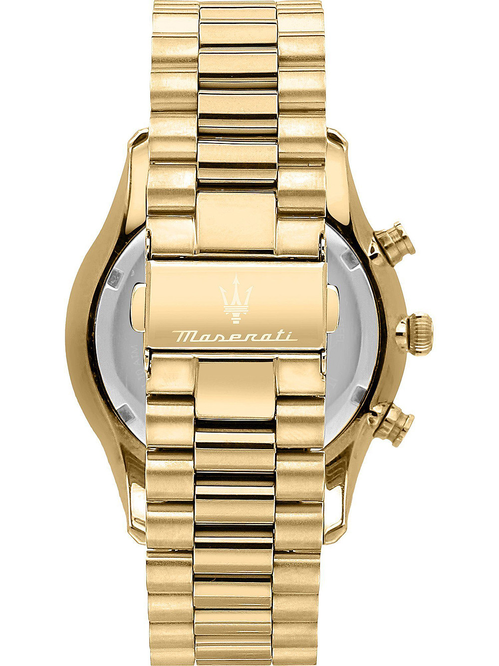 • Manufacturer no.: R8873646003 • Manufacturer series: Tradizione Chrono 45mm • Functions: 24-hours, Chronograph, Date, Hour, Minute, Second • Movement: Battery (quartz) • Dial color: White • Display: Analog • Water resistant: 10 • Bezel: Fixed • Surface finish: Matted, Polished • Case color: Gold • Case material: Stainless steel • Case thickness: 12 • Case shape: Round • Case width: 45 • Caseback: screwed, Stainless steel bottom • Gender: Mens • Crown: Screwed • Glas: hardened, Mineral glass • Lighting: Illumin. hands • Style: Modern • Strap material: Stainless steel • Strap color: Gold • Lug width: 22 • Clasp: Folding clasp • Max wrist circumferences: 210 • Item weight: 0.14 • Scope of delivery: Box, Instruction, Packaging, Warranty documents