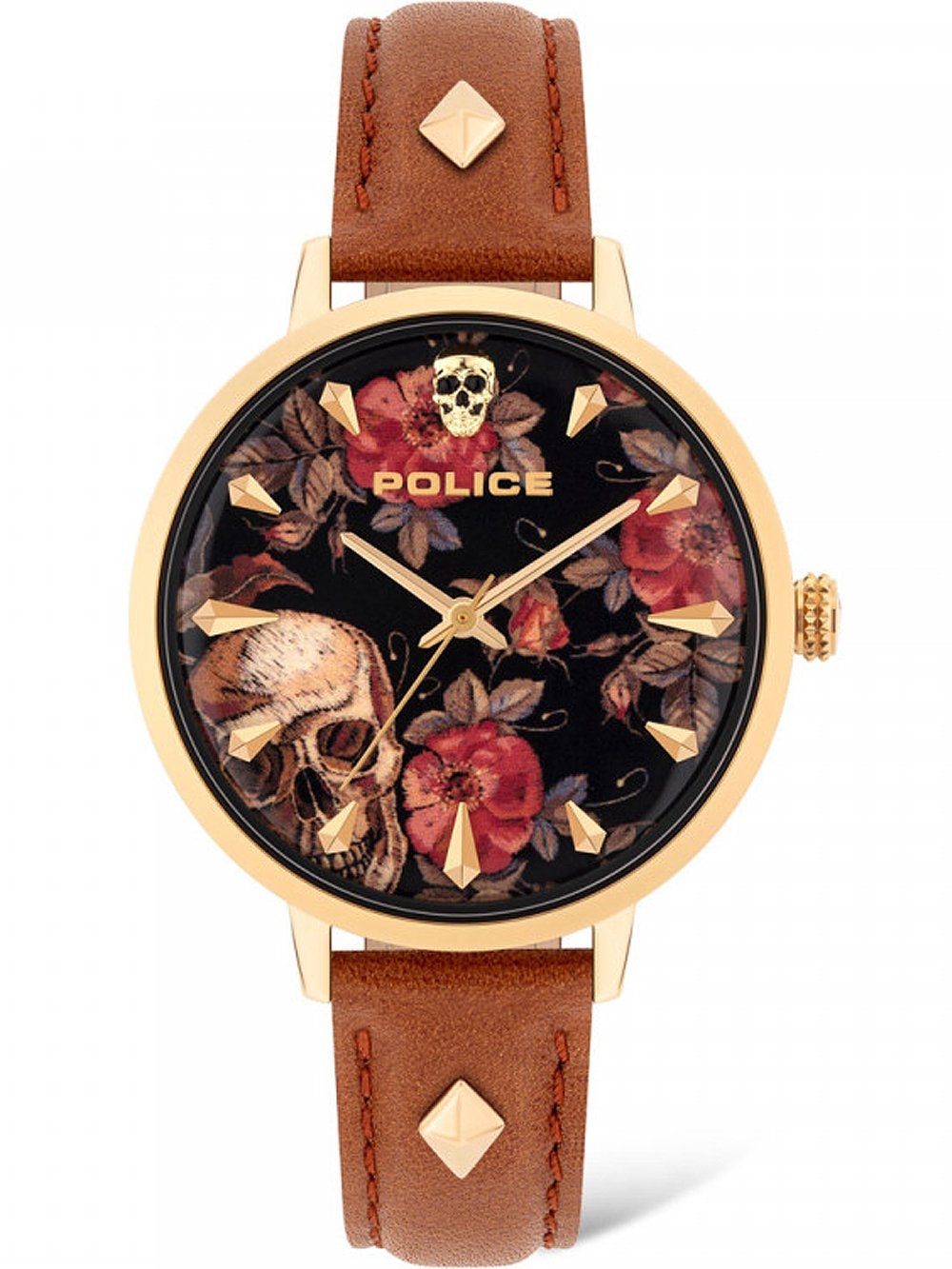 Brand: Police • Manufacturer no.: PL16034MSG.02 • Manufacturer series: Miona 36mm • Functions: Hour, Minute, Second • Movement: Battery (quartz) • Dial color: Various • Display: Analog • Water resistant: 3 • Bezel: Fixed • Surface finish: Polished • Case color: Gold • Case material: Stainless steel • Case thickness: 9 • Case width: 36 • Caseback: pressed, Stainless steel bottom • Gender: Ladies • Glas: hardened, Mineral glass • Style: Modern • Strap material: Calf leather • Strap color: Brown • Lug width: 14 • Clasp: Buckle clasp • Max wrist circumferences: 190 • Item weight: 0.03