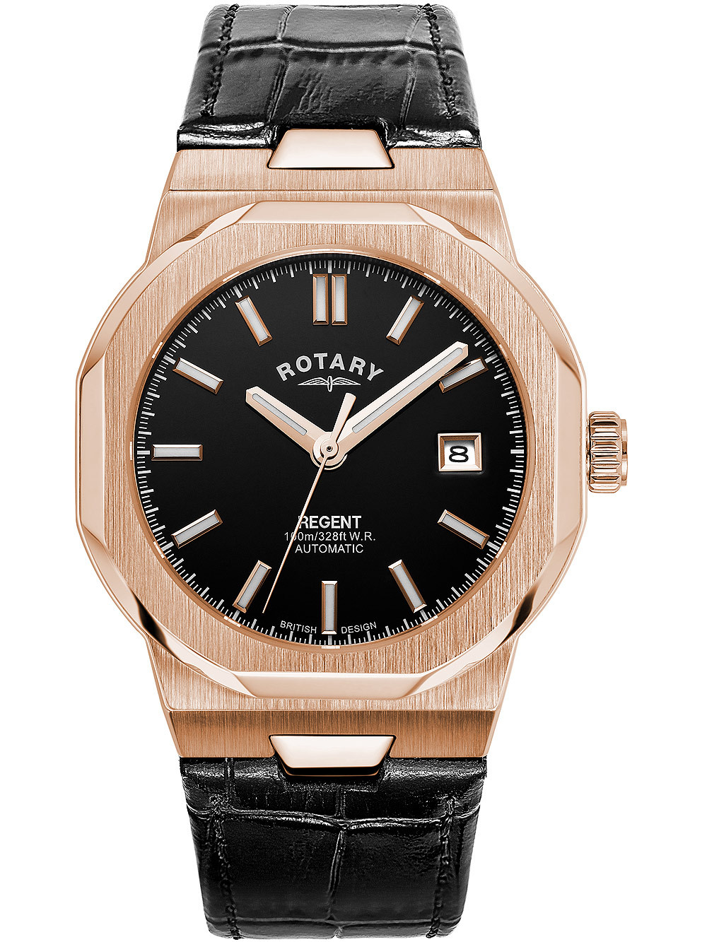 • Manufacturer no.: GS05414/04 • Manufacturer series: Regent automatic 40mm • Functions: Date, Hour, Minute, Second • Movement: Automatic • Dial color: Black • Display: Analog • Water resistant: 10 • Bezel: Fixed • Surface finish: Matted, Polished • Case color: Rosé gold • Case material: Stainless steel • Case thickness: 12 • Case shape: Round • Case width: 40 • Caseback: Glas bottom, screwed • Gender: Mens • Glas: anti-reflecting, Saphire glass • Lighting: Illumin. hands, Illumin. indexes • Style: Modern • Strap material: Calf leather • Strap color: Black • Lug width: 24 • Clasp: Buckle clasp • Max wrist circumferences: 220 • Item weight: 0.09 • Scope of delivery: Box, Instruction, Packaging, Warranty documents
