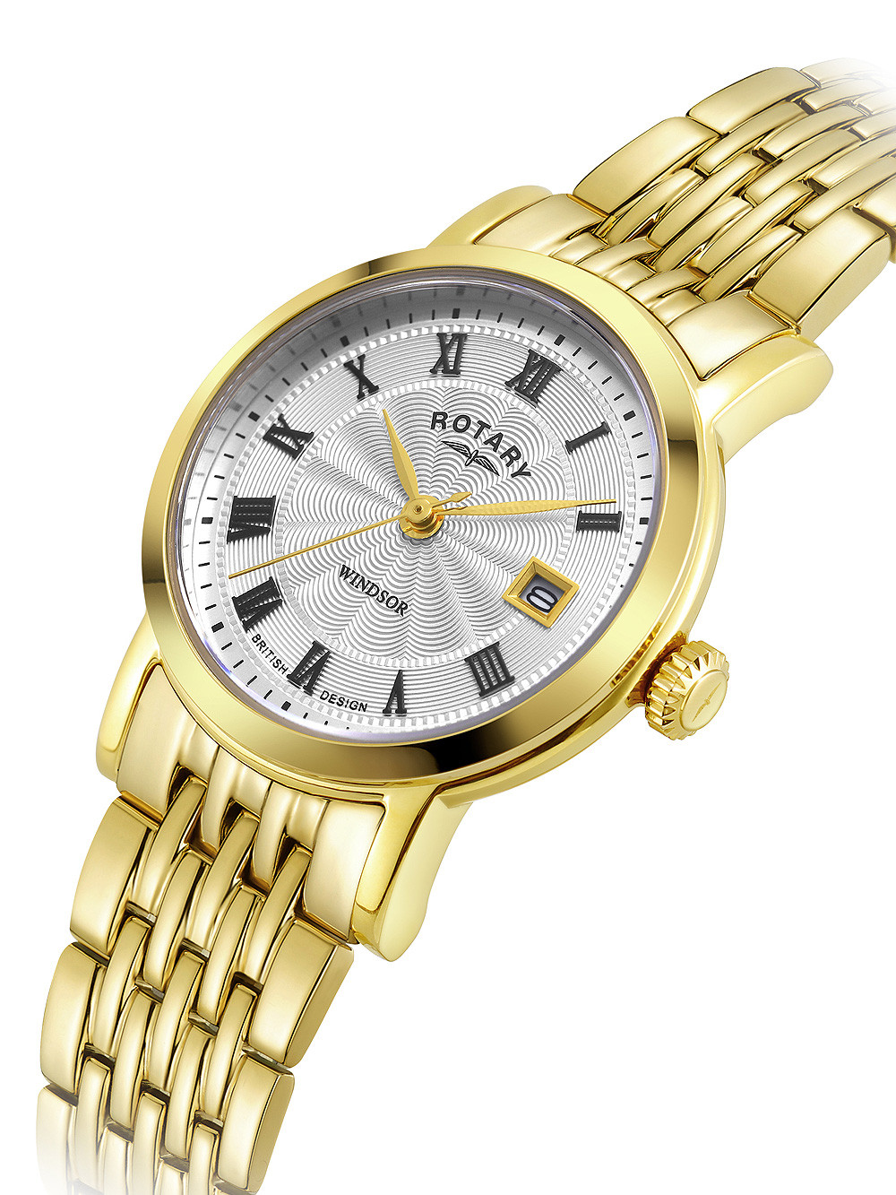• Manufacturer no.: LB05423/01 • Manufacturer series: Windsor 27mm • Functions: Date, Hour, Minute, Second • Movement: Battery (quartz) • Dial color: Silver • Display: Analog • Water resistant: 5 • Bezel: Fixed • Surface finish: Polished • Case color: Gold • Case material: Stainless steel • Case thickness: 8 • Case shape: Round • Case width: 27 • Caseback: pressed, Stainless steel bottom • Gender: Ladies • Glas: anti-reflecting, Saphire glass • Style: Modern • Strap material: Stainless steel • Strap color: Gold • Lug width: 14 • Clasp: Butterfly clasp • Max wrist circumferences: 180 • Item weight: 0.06 • Scope of delivery: Box, Instruction, Packaging, Warranty documents
