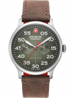 Brand: Swiss Military Hanowa • Manufacturer no.: 06-4335.04.006 • Manufacturer series: Active Duty 43mm • Functions: Date, Day, Hour, Minute, Second • Movement: Battery (quartz) • Movement label: 706.1, Ronda • Dial color: Grey • Display: Analog • Water resistant: 10 • Bezel: Fixed • Surface finish: Matted • Case color: Silver • Case material: Stainless steel • Case thickness: 5 • Case width: 43 • Caseback: screwed, Stainless steel bottom • Gender: Mens • Glas: anti-reflecting, Saphire glass • Lighting: Illumin. hands, Illumin. indexes • Style: Sporty • Strap material: Calf leather • Strap color: Brown • Lug width: 22 • Clasp: Buckle clasp • Max wrist circumferences: 220 • Item weight: 0.07
