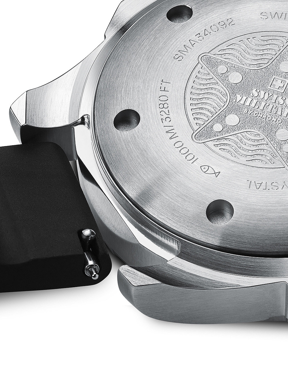 • Manufacturer no.: SMA34092.09 • Manufacturer series: automatic Diver 45mm • Functions: Date, Hour, Minute, Second • Movement: Automatic • Dial color: Black, Grey • Display: Analog • Water resistant: 100 • Bezel: counterclockwise, Turnable • Surface finish: Matted, Polished • Case color: Silver • Case material: Stainless steel • Case thickness: 16 • Case width: 45 • Caseback: screwed, Stainless steel bottom • Gender: Mens • Crown: Screwed • Glas: anti-reflecting, Saphire glass • Lighting: Illumin. hands, Illumin. indexes • Style: Sporty • Strap material: Silicon • Strap color: Green • Lug width: 22 • Clasp: Buckle clasp • Max wrist circumferences: 230 • Item weight: 0.16 • Scope of delivery: Box, Instruction, Packaging, Warranty documents