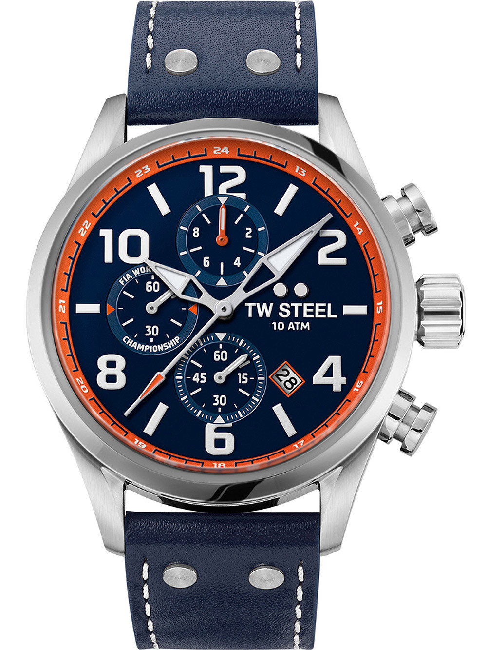 • Manufacturer no.: VS89 • Manufacturer series: Fia World Rally Chronograph 45mm • Functions: Chronograph, Date, Hour, Minute, Second • Movement: Battery (quartz) • Movement label: 6S10, Miyota • Dial color: Blue • Display: Analog • Water resistant: 10 • Bezel: Fixed • Surface finish: Matted, Polished • Case color: Silver • Case material: Stainless steel • Case thickness: 17 • Case width: 48 • Caseback: screwed, Stainless steel bottom • Gender: Mens • Crown: Screwed • Glas: Mineral glass, With sapphire coating • Lighting: Illumin. hands • Style: Sporty • Strap material: Calf leather • Strap color: Blue • Lug width: 24 • Clasp: Buckle clasp • Max wrist circumferences: 230 • Item weight: 0.14 • Scope of delivery: Box, Instruction, Packaging, Warranty documents