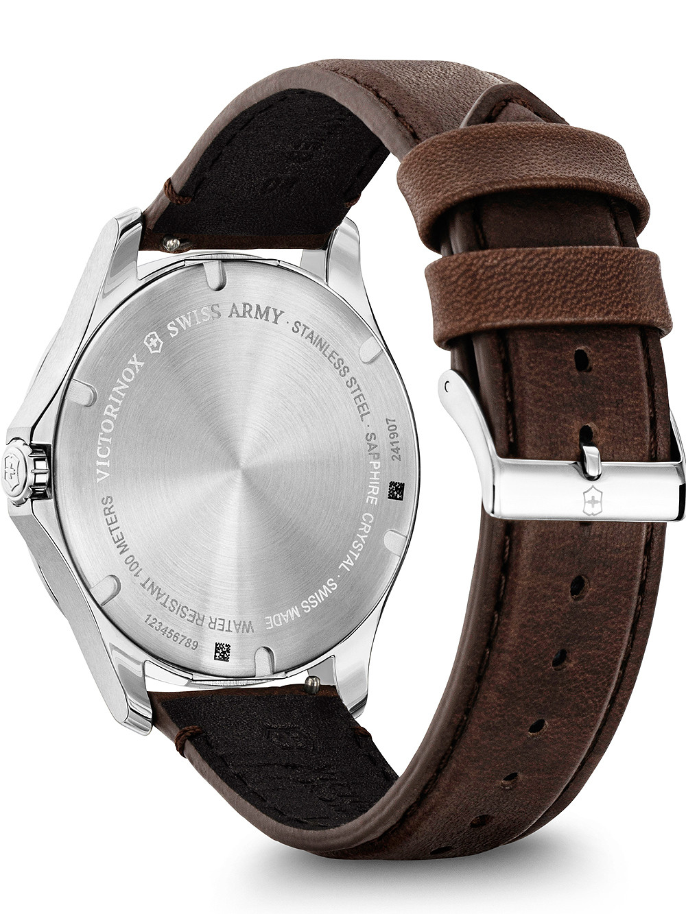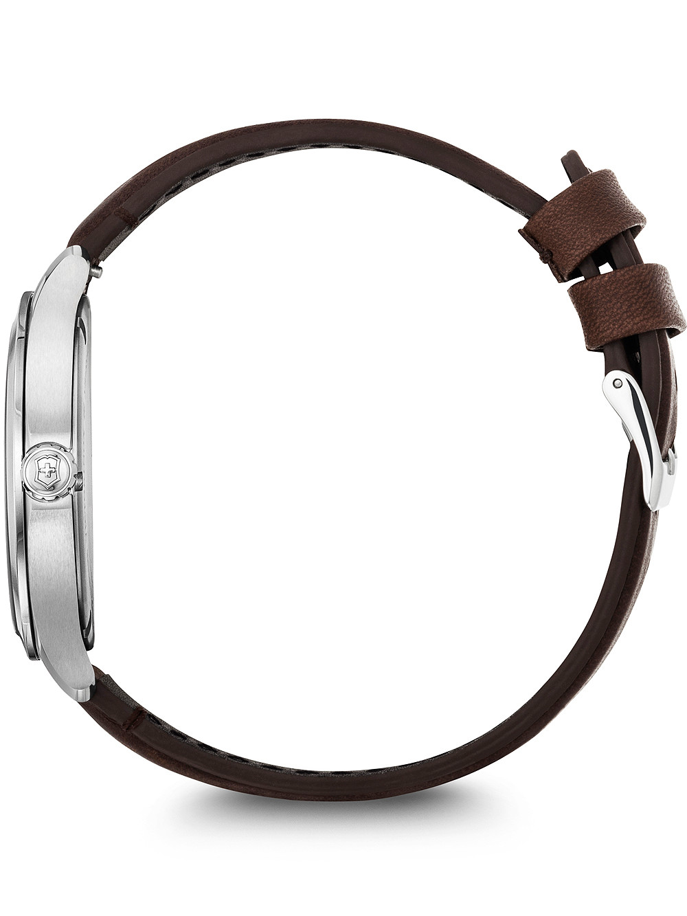 • Manufacturer no.: 241907 • Manufacturer series: Alliance 40mm • Functions: Date, Hour, Minute, Second • Movement: Battery (quartz) • Dial color: Silver • Display: Analog • Water resistant: 10 • Bezel: Fixed • Surface finish: Matted, Polished • Case color: Silver • Case material: Stainless steel • Case thickness: 9 • Case width: 40 • Caseback: screwed, Stainless steel bottom • Gender: Mens • Glas: anti-reflecting, Saphire glass • Lighting: Illumin. hands, Illumin. indexes • Style: Sporty • Strap material: Calf leather • Strap color: Brown • Lug width: 20 • Clasp: Buckle clasp • Max wrist circumferences: 220 • Item weight: 0.06